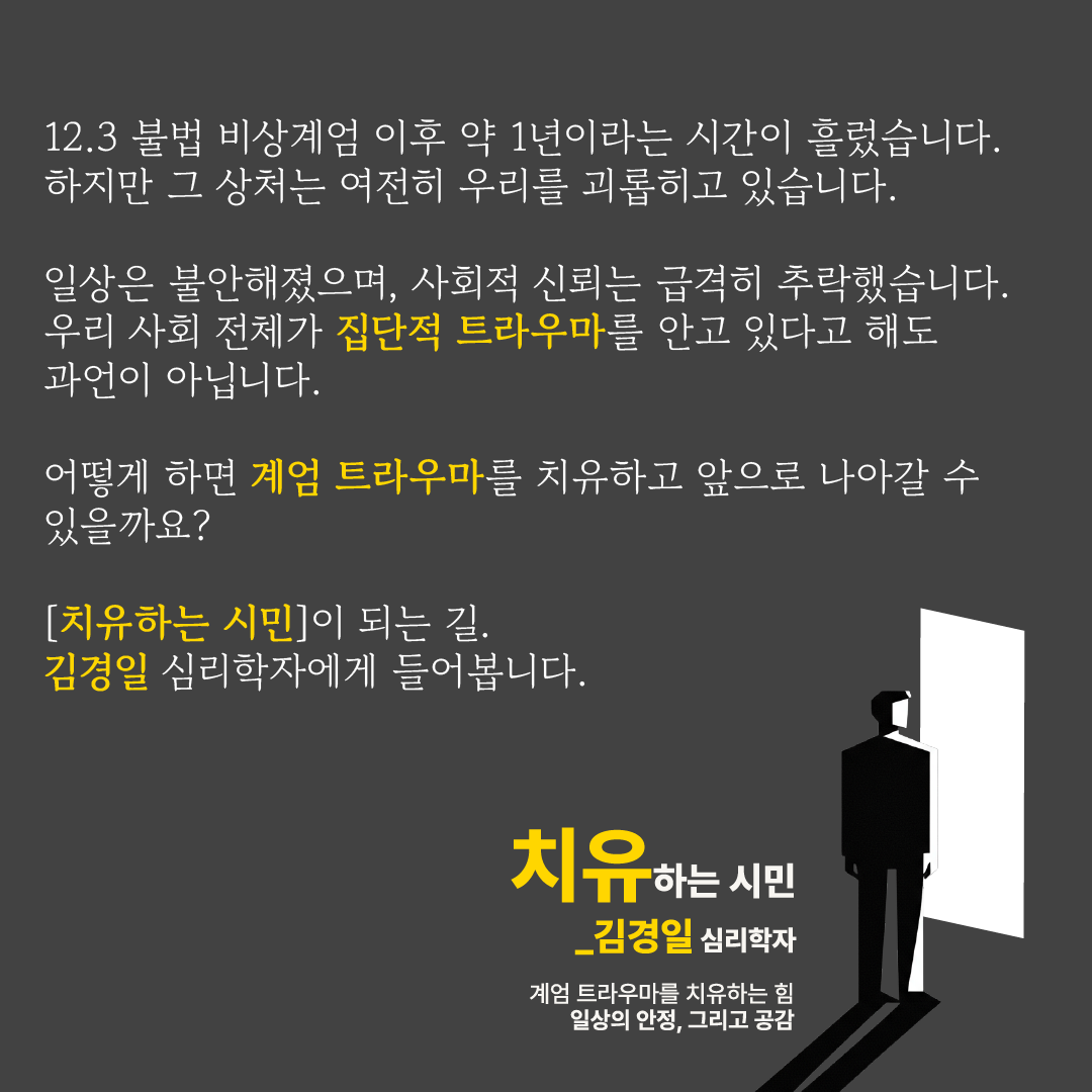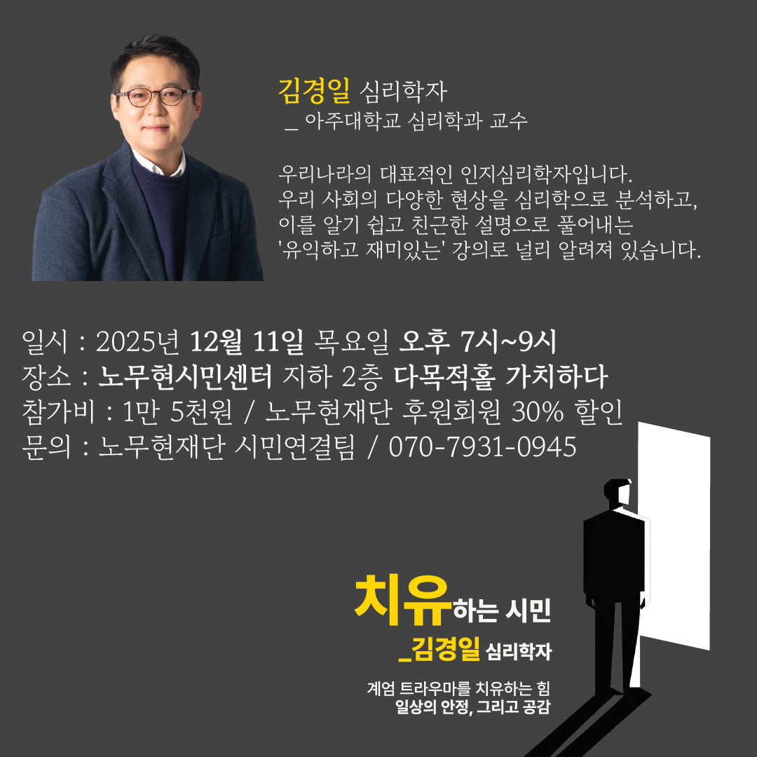[센터|시민|오프라인] [노무현시민센터 명사특강 : ㅁㅁ하는 시민] 치유하는 시민_김경일 심리학자 (2025.12.11. ~ 2025.12.11.)