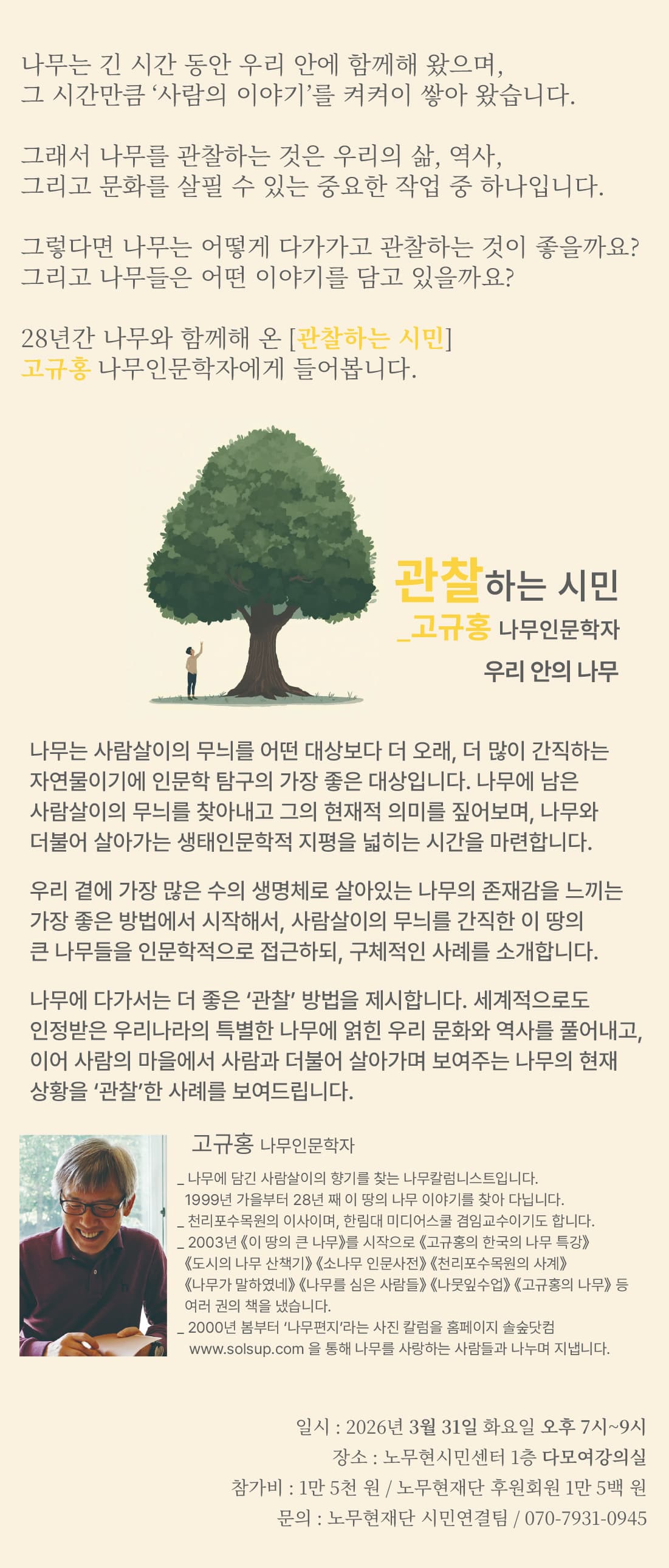 [센터|시민|오프라인] [노무현시민학교 특강] 관찰하는 시민_고규홍 나무인문학자 (2026.3.31. ~ 2026.3.31.)